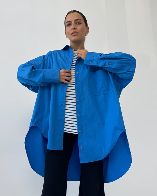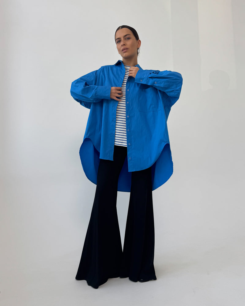 Koszula Calm w odcieniu głębokiego niebieskiego to esencja minimalistycznej elegancji i nowoczesnego komfortu. Gładka forma oraz czysta linia projektu sprawiają, że model zachowuje ponadczasowy charakter i doskonale wpisuje się w ideę kapsułowej garderoby.