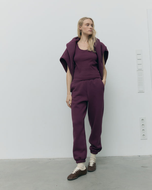 materiał: bawełna ściągaczowa premium, elastyczna i oddychająca kolor: Mauve Wine (głęboki burgund) fason: dopasowany, z szerokim pasem w talii produkcja: Polska idealne w komplecie z bluzą i t-shirtem Cheer komfortowe, stylowe, minimalistyczne