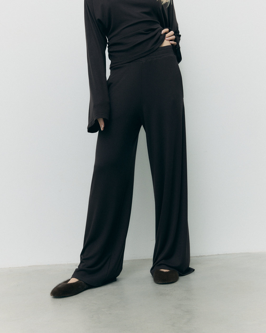 Longsleeve Serenity Super Soft Chocolate to nowoczesna baza kapsułowej garderoby w odcieniu głębokiej czekolady. Uszyty z miękkiej wiskozy premium, łączy minimalistyczny design z wygodą i lekkością. Oversize’owy krój inspirowany latami 80. wizualnie podkreśla linię ramion, tworząc subtelny efekt „power looku”.