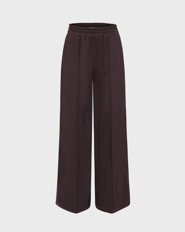 Proste, lekko rozszerzane nogawki nadają sylwetce smukłości, a przeszycia przez środek optycznie wydłużają nogi, podkreślając ich proporcje. Kieszenie dodają funkcjonalności, a głęboki czekoladowy odcień sprawia, że spodnie stają się uniwersalnym elementem garderoby – świetnym zarówno do casualowych, jak i eleganckich stylizacji.