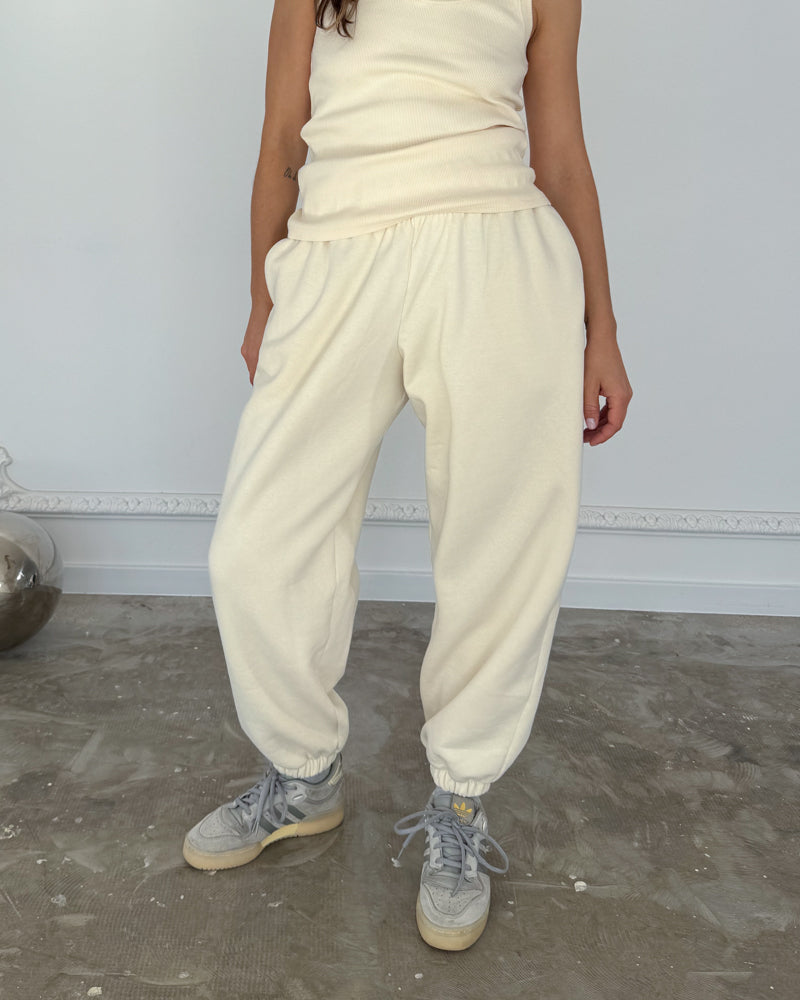Spodnie Cool Antique Ecru to minimalistyczna elegancja w codziennym wydaniu. Ich oversize’owy krój inspirowany męską garderobą dodaje stylizacji nonszalancji i nowoczesnego charakteru, a elastyczny pas w talii zapewnia wygodę i idealne dopasowanie. Uszyte z lekkiego, przewiewnego materiału, są przyjemne w noszeniu, odporne na deformacje i stanowią świetną bazę kapsułowej garderoby.