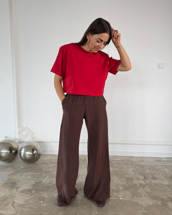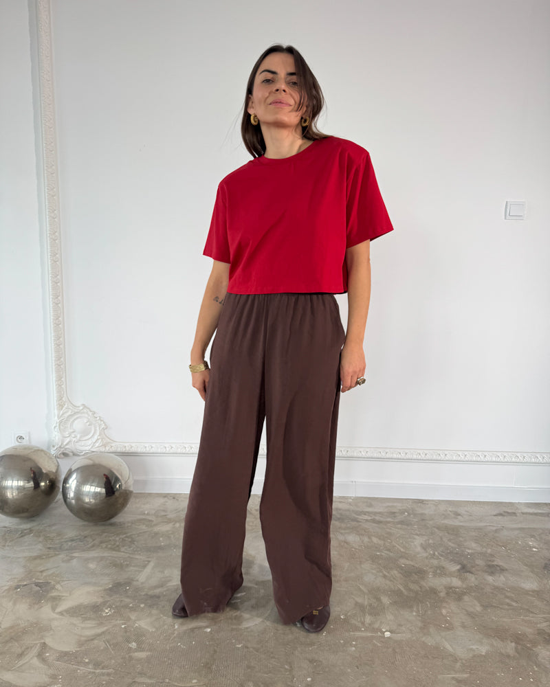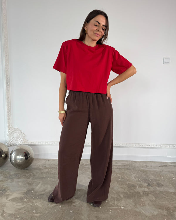 Uszyty z miękkiej, oddychającej bawełny premium, zapewnia komfort noszenia przez cały dzień i trwałość formy. Crop Move Red to świadomy wybór dla kobiet, które cenią prostotę, jakość i spójny styl.