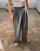 fason: wysoki stan, zakładki w talii, szeroka nogawka
