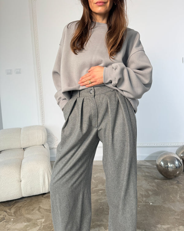 Spodnie Muse Grey Melange to połączenie ponadczasowej klasyki i nowoczesnej elegancji w duchu slow fashion. Zaprojektowane z myślą o kobietach, które cenią jakość, wygodę i minimalistyczny styl.
