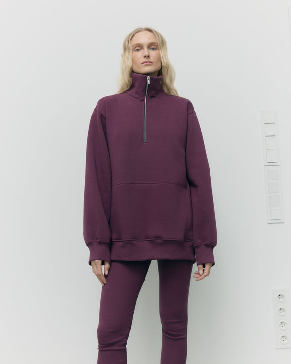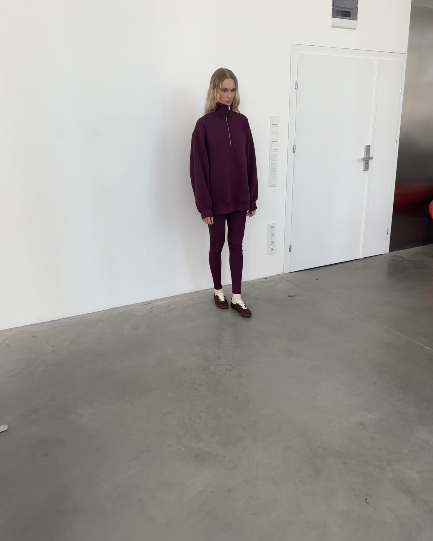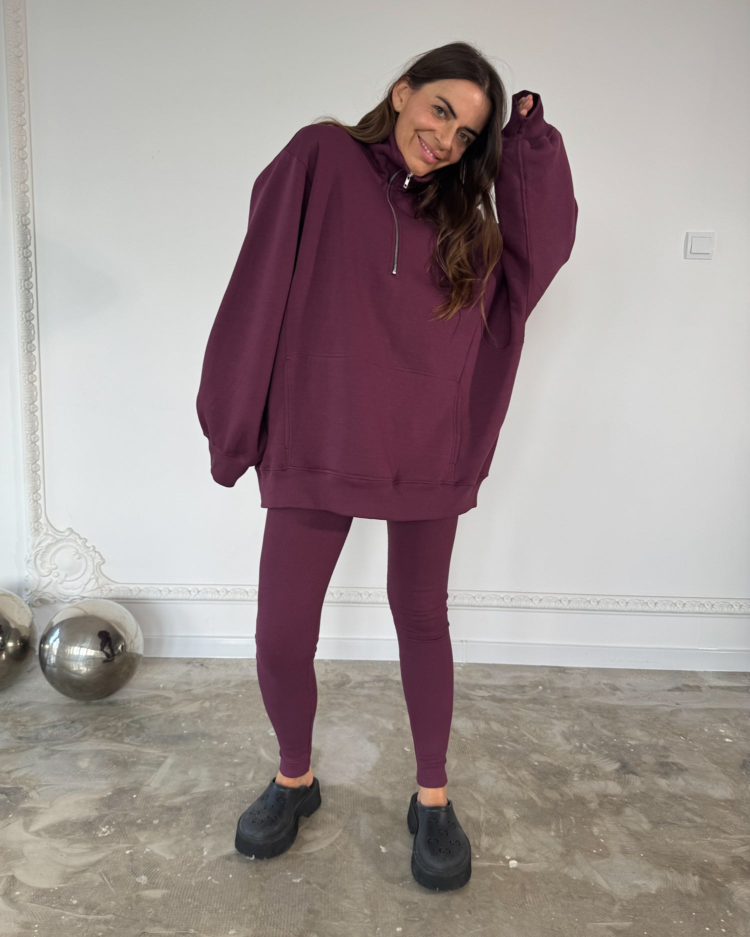 Kolor Mauve Wine – głęboki, winny burgund – dodaje stylizacji wyrazistości i ponadczasowej elegancji. Bluza sprawdzi się przez cały rok – jako lekka warstwa wiosną i latem oraz baza pod płaszcz jesienią i zimą.