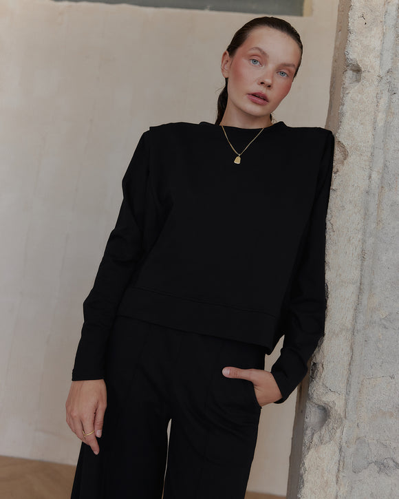 Czarna bluza Art z bawełny z poduchami