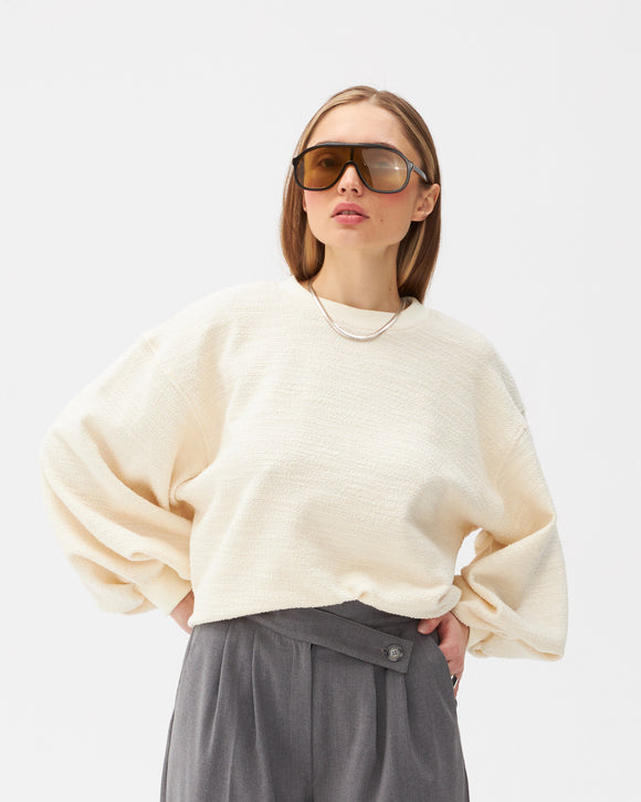 Bawełniana bluza Enjoyable ecru boucle